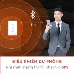Trong trường hợp xui rủi như wifi bị lỗi, quên đóng tiền internet, “cá mập cắn cáp”,… thì công tắc vẫn có chế độ dự phòng cho chủ nhà mở cửa cuốn. Chủ nhân chỉ cần đứng gần cửa cuốn trong phạm vi 5 mét, mở ứng dụng lên, công tắc sẽ tự chuyển đổi sang chế độ phát Bluetooth để mở cửa cuốn. Đây là tính năng tích hợp duy nhất trên công tắc cửa cuốn Vconnex.