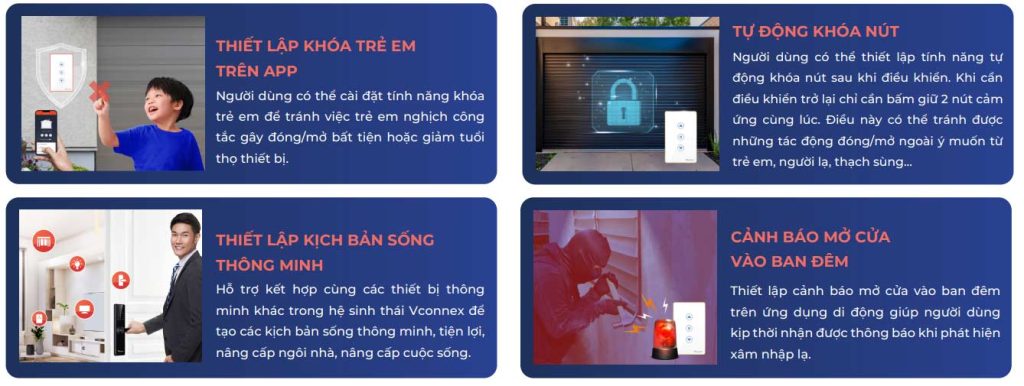Tính năng của Công tắc cửa cuốn không viền Vconnex